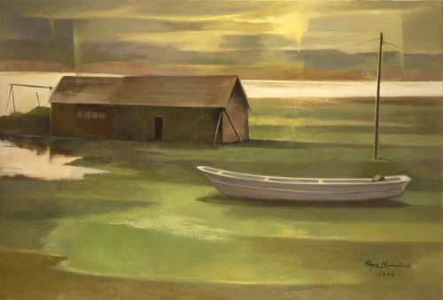 湖畔風光る 山羽 斌士 2000年 油彩 P30 YH001-0061 |