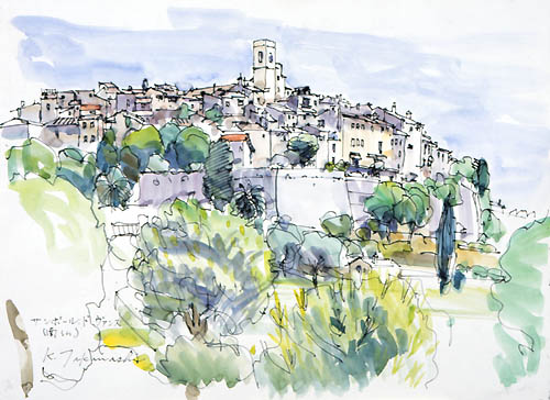 サンポール・ド・ヴァンス 高梨 潔 1997年 水彩 39.2×54.5cm TK001-P096 |