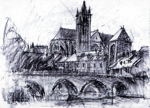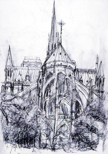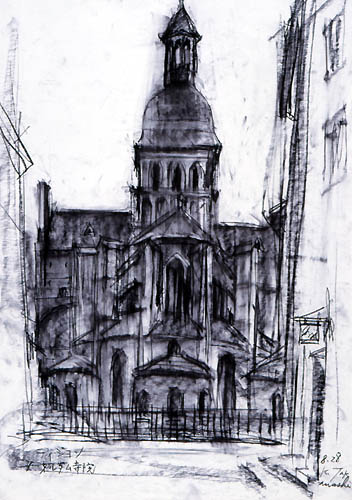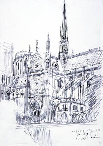 ノートルダム寺院 高梨 潔 1991年 デッサン 54.0×38.7cm TK001-P101 |