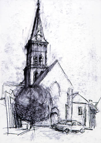 シュヴルーズの教会 高梨 潔 1991年 デッサン 54.0×38.7cm TK001-P104 |