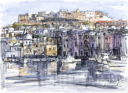 プロチダ島の港町 高梨 潔 1998年 水彩 39.3×54.7cm TK001-P098 |
