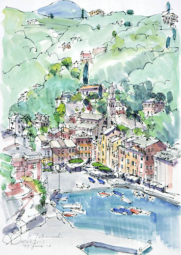 ポルトフィーノ 高梨 潔 1997年 水彩 54.3×39.2cm TK001-P099 |