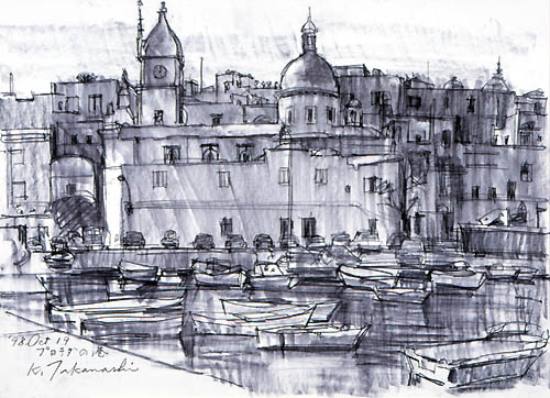 プロチダ島の港 高梨 潔 1998年 デッサン 38.7×54.0cm TK001-P108 |