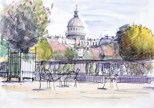 リュックサンブール公園にて 高梨 潔 1991年 水彩 29.5×42.1cm TK001-P091 |