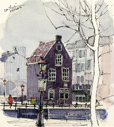 アムステルダム(オランダ) 吉崎 道治 1996年 水彩 24.8×21.7cm YM001-G142 |