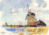 風車(ザンスカンス)オランダ 吉崎 道治 1996年 水彩 21.7×31cm YM001-G146 |