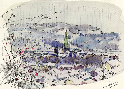 トロンハイムの教会(ノルウェー) 吉崎 道治 2004年 水彩 21.7×31cm YM001-G150 |