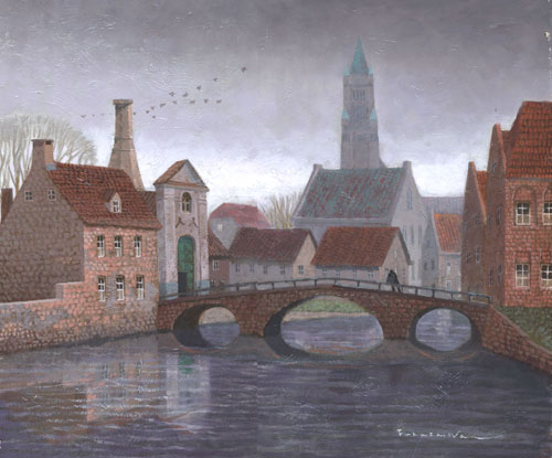 曇り日のブルージュ ベルギー 2003年 油彩 F8 FM001-0022 |