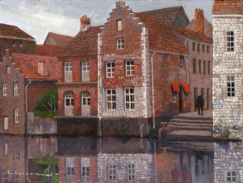 川岸の建物 ベルギー・ゲント 2003年 油彩 F6 FM001-0023 |