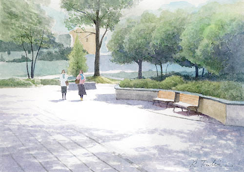光と影 (パリ・リュクサンブール公園) 2004年 水彩 260×210mm FR001-0019 |