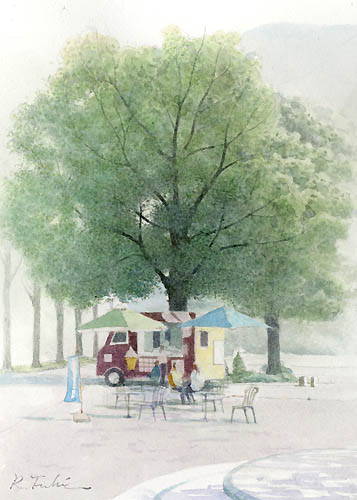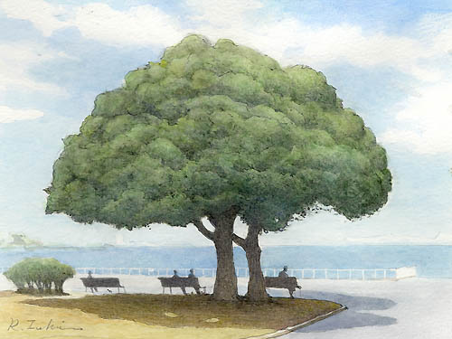 新緑の風 (横浜山下公園) 2004年 水彩 235×165mm FR001-0027 |