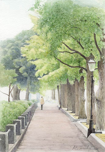 新緑の山下公園通り 2004年 水彩 235×165mm FR001-0029 |