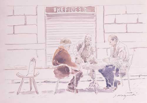 トランプをする人たち (ローマ) 1982年 油彩 35×50cm MY001-P041 |