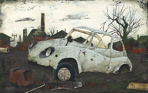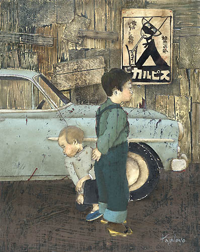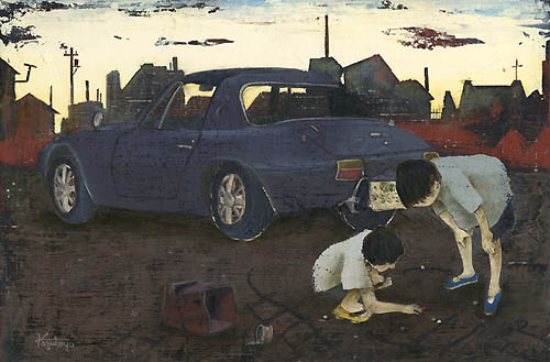 車とメンコ(コロナ) 2003年 油彩 F3 NK002-0016 |