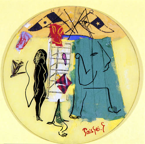ピアノと女 1999年 ガラス絵 18×18cm ST001-P030 |