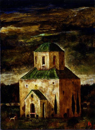 丘の朝(朱の館) 1989年 油彩 YM002-00153 |