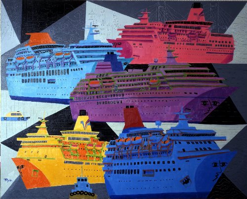 コンテナ船 2002年 油彩 50号 YR001-P010 |