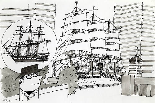 帆船日本丸 2004年 ペン画 B4 YR001-G032 |