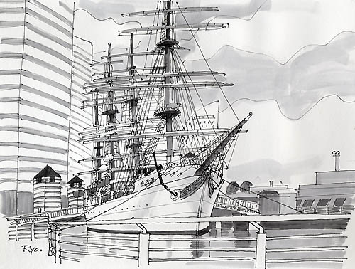 帆船日本丸 2004年 ペン画 B4 YR001-G031 |