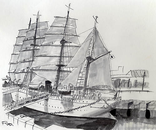 帆船日本丸 2004年 ペン画 A4 YR001-G036 |