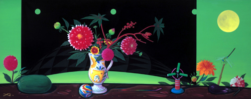 ダリアと唐胡麻 油彩 50変形 46.7×116.7 YS001-0054 |