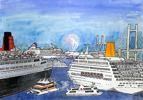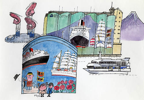 横浜港3隻集合 柳原 良平 2004年 水彩 B4 YR001-G004 |