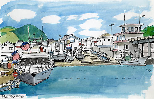 千葉勝山港 柳原 良平 2004年 水彩 B4 YR001-G015 |