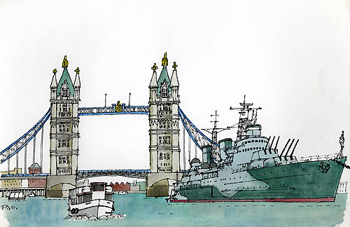 テムズ川 柳原 良平 2004年 水彩 B4 YR001-G019 |