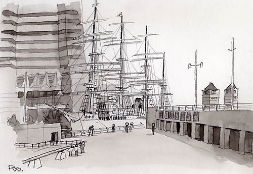 帆船日本丸 柳原 良平 2004年 ペン画 B4 YR001-G032 |