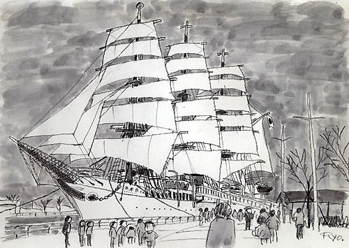 帆船日本丸 柳原 良平 2004年 ペン画 A4 YR001-G036 |