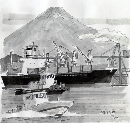 清水港 柳原 良平 2004年 ペン画 B4 YR001-G037 |