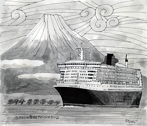 QM2 柳原 良平 2004年 ペン画 B4 YR001-G038 |