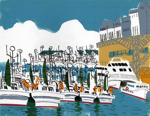 大桟橋とクリスタルハーモニー 柳原 良平 2004年 水彩 B4 YR001-G025 |