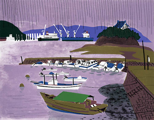 八丈島神湊漁港 柳原 良平 2004年 水彩 B4 YR001-G026 |