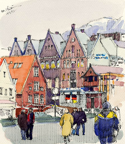 ベルゲン(ノルウェー) 吉崎 道治 2003年 水彩 24.8×21.7cm YM001-G143 |