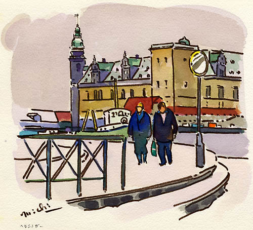 ヘルシンガー(デンマーク) 吉崎 道治 2003年 水彩 21.7×24.8cm YM001-G141 |