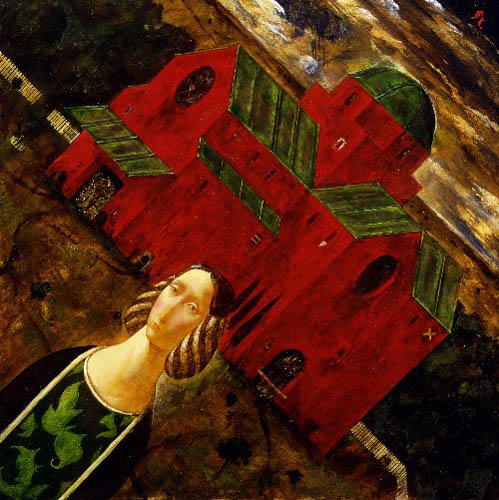 丘の朝(朱の館) 吉岡 正人 1989年 油彩 YM002-00153 |