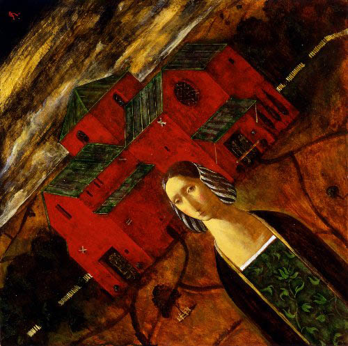 丘の朝(朱の館) 1989年 油彩 YM002-00153 |